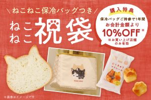 ※『ねこねこ祝袋』と異なるデザインの『ねこねこランチ保冷バッグ』をご持参いただいた場合、割引は適応されません。
